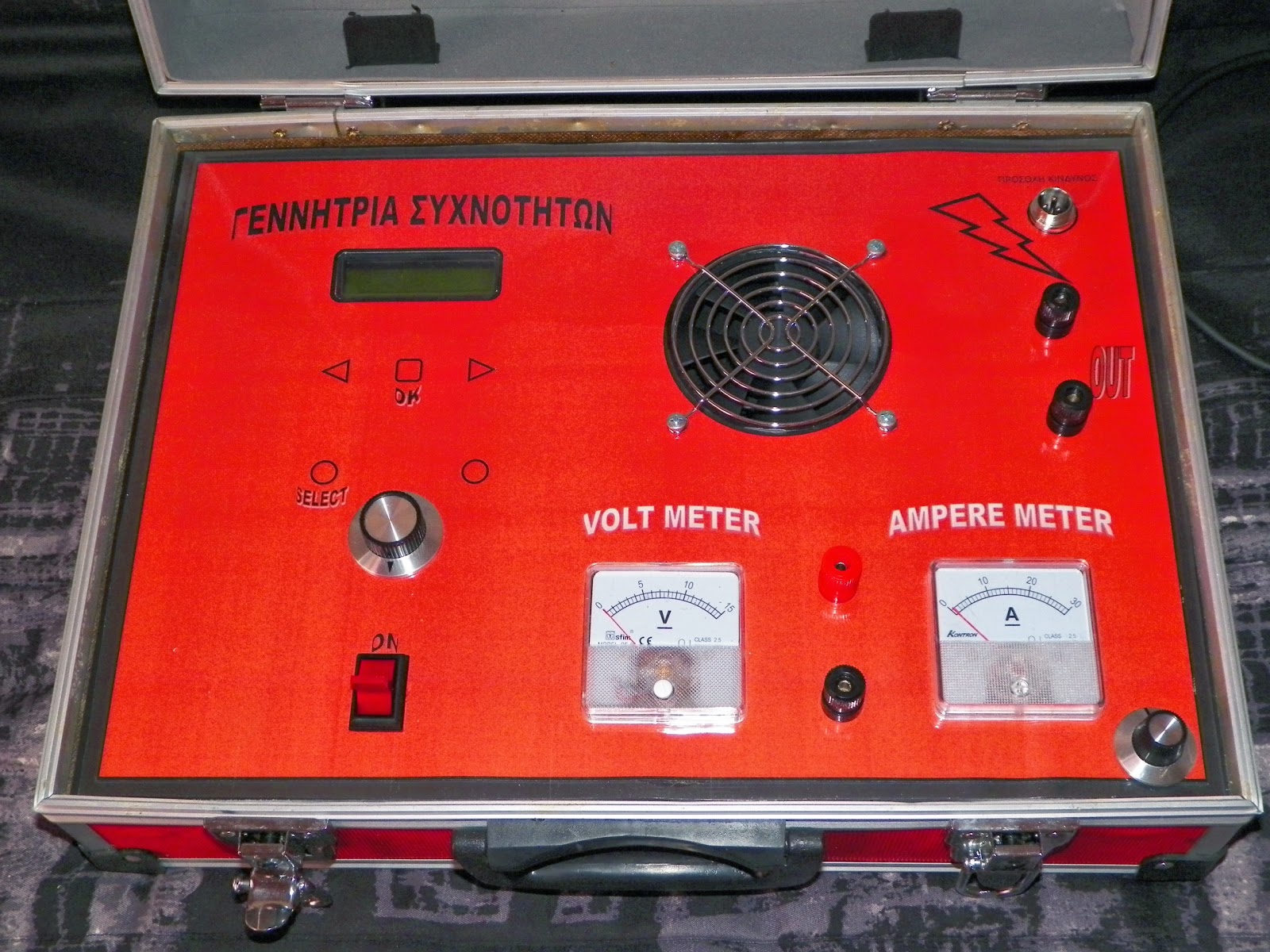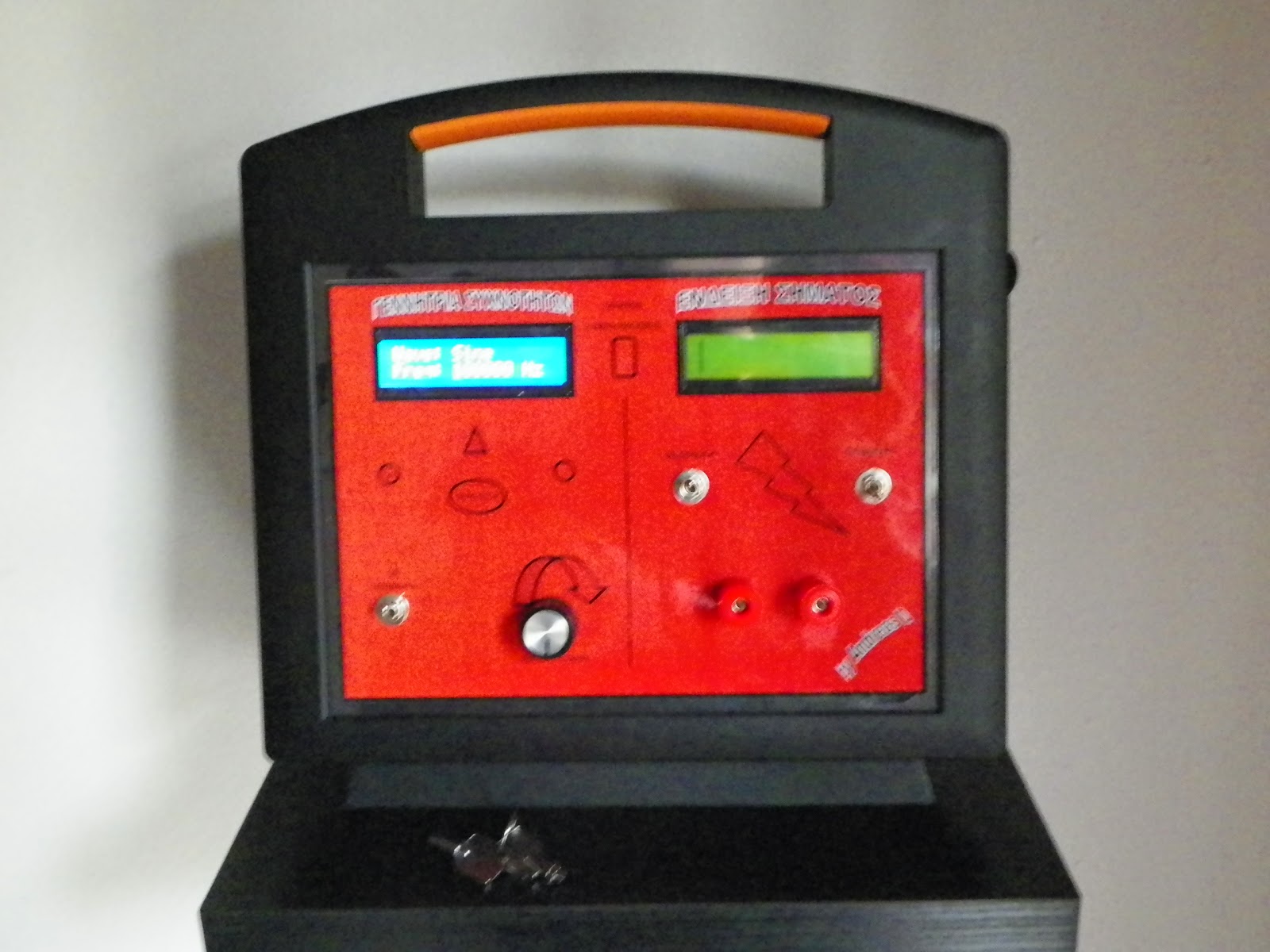 Γεννήτρια συχνοτήτων με πεδιομετρο και λήψη με ένδειξη vu meter .Ένδειξη στην κεντρική μονάδα αλλά και στον δέκτη επικοινωνίας ,<χειρός > με βέλος κατεύθυνσης και ένδειξη με led ισχύος. Γεννήτρια εδάφους για ραβδοσκοπική χρήση με λήψη για επιβεβαίωση πραγματικού στόχου. Μπορεί να συνεργαστεί με ραβδοσκοπικά , ηλεκτρονικά η οργανικά , με vlf receiver (δέκτες χαμηλών συχνοτήτων ) και όλων των τύπων ραβδοσκοπικά συστήματα,μονές βέργες ,διπλές βέργες , εκκρεμές, και άλλα.
