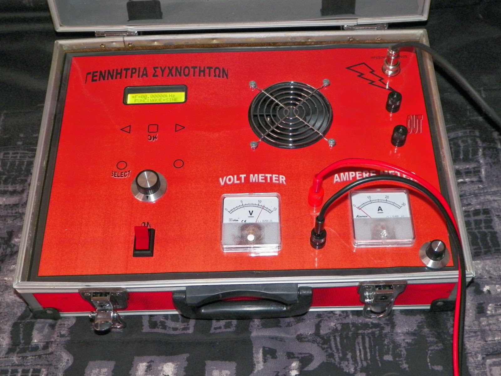 Συνδέοντας την έξοδο του μηχανήματος προς την Γη μπορούμε να ρυθμίσουμε τα Ampere εξόδου με τον ροοστάτη κάτω δεξιά. Εχει όργανο για Volt για να βλέπουμε την τάση της μπαταρίας και όργανο Ampere για να ρυθμίζουμε την ισχύ εξόδου μας!Επίσης υπάρχει μια dds γεννήτρια ώστε να ρυθμίζουμε το εύρος συχνοτήτων που θέλουμε να δουλέψουμε. Είναι μια εύκολη αλλά και σύνθετη κατασκευή με υψηλή ένταση αλλά και έξοδο ώστε να μπορούμε να ραβδοσκοπουμε με υποβοηθεια και από αέρα αλλά και από Γη.